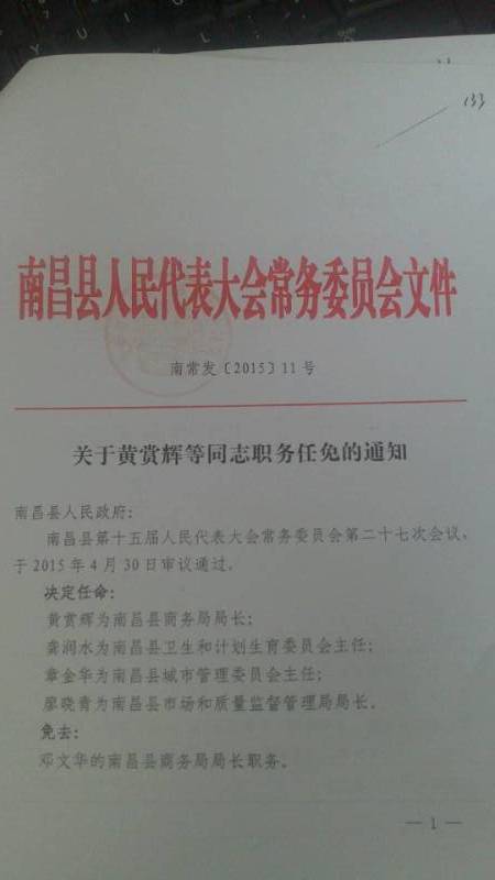 关于黄赏辉同志职务任免的通知