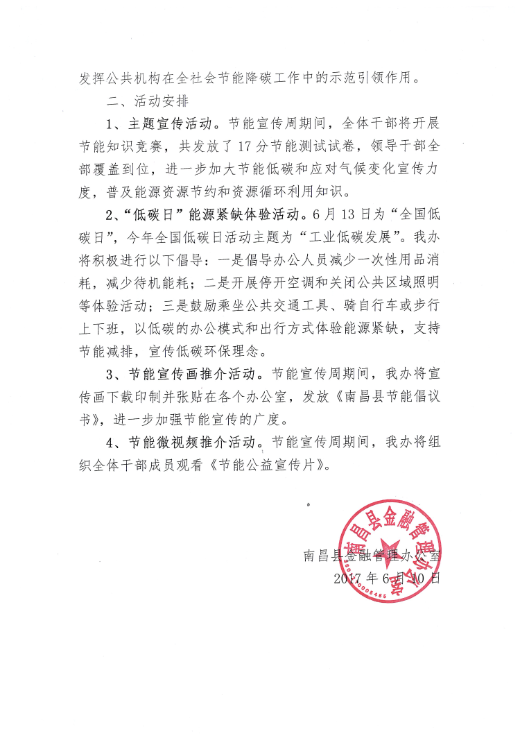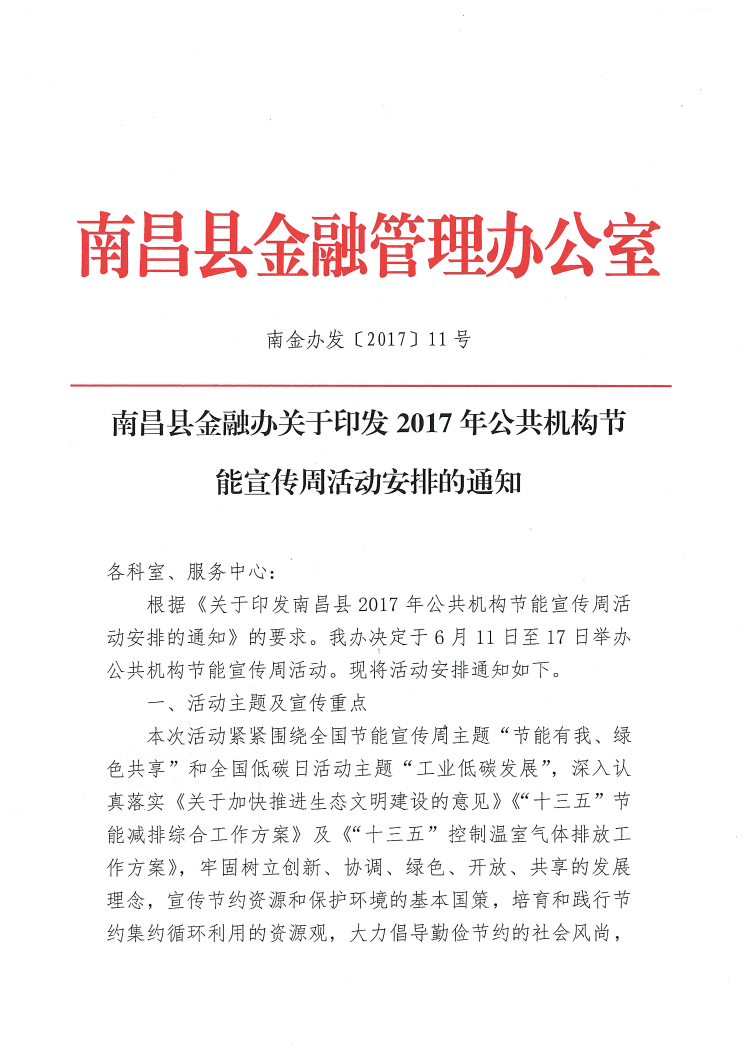 南昌县金融办关于印发2017年公共机构节能宣传周活动安排的通知